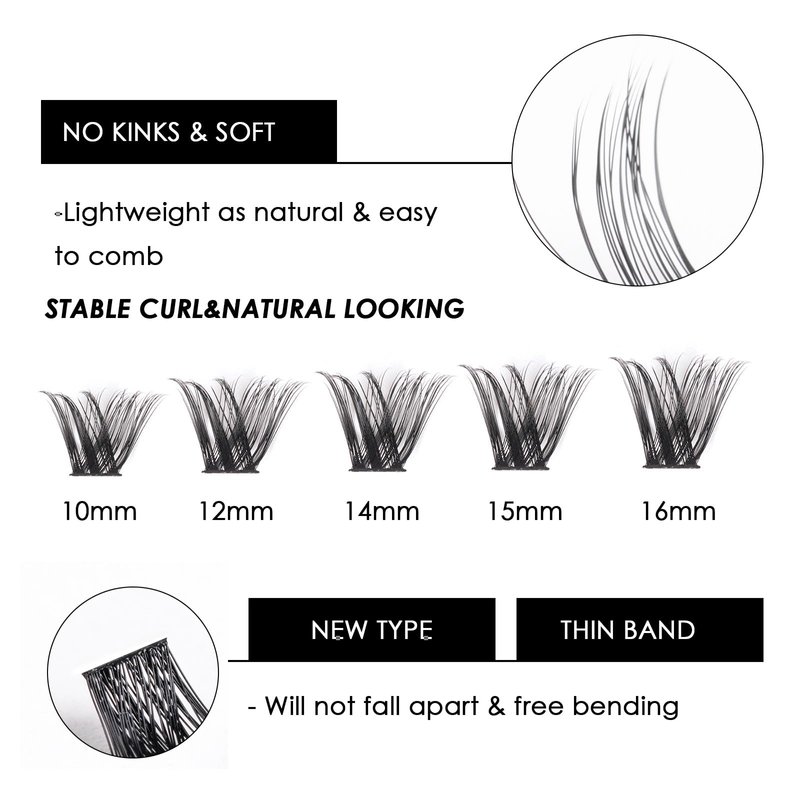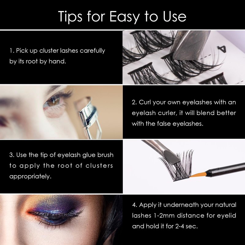 - 🌼COMFORTABLE AND NATURAL-LOOKING:These individual lashes are comfortable to wear and hardly noticeable. To apply them, pinch the band of the cluster lash extensions with tweezers and place them below your natural lashes. The mixed-length band of the clusters won't poke your eyelids, ensuring a comfortable wearing experience.