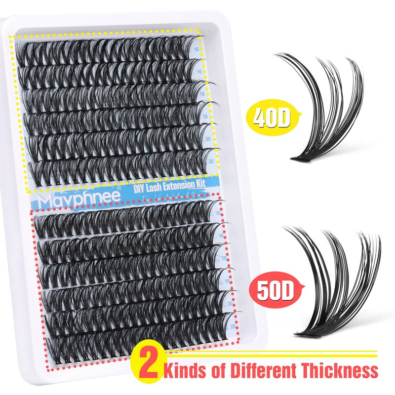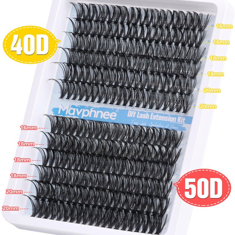 Lash Clusters 240 Pcs Individuals Eyelash Extensions 16-20MM Dramatic Long Fluffy D Curl Lash Extensions Pack by Mavphnee (40D+50D)