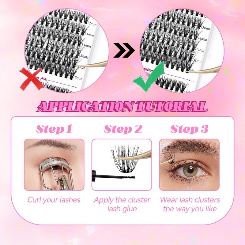 - DIY individual clusters at home: Step 1: Gently curl your lashes. Step 2: Pick up the lash clusters with lash tweezer. Step 3: Apply cluater lash glue. Step 4: Wear cluster lashes according to your preference.
