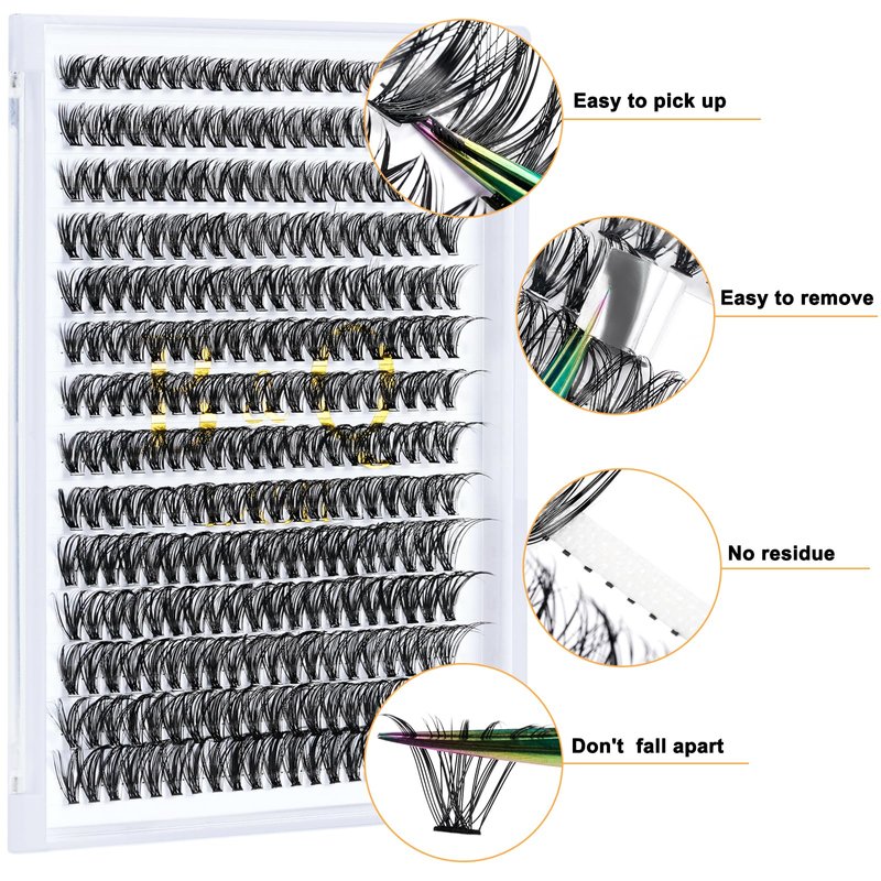 - 【Suitable to wear】: Use a tweezer to pinch the band of cluster eyelashes and apply lash clusters below your natural lashes. You can barely feel the cluster lashes. The bottom of the clusters is flat and hardly noticeable. The lash band part will not stab your eyelid area when you blink. Bring you a perfect experience during lash application.
