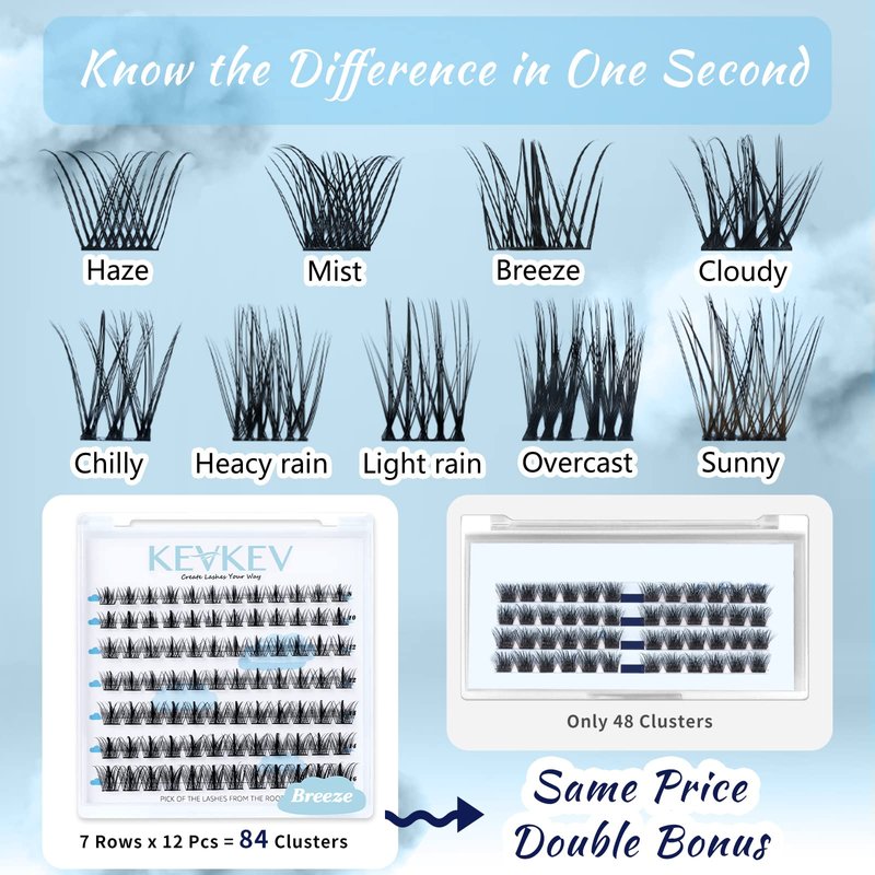 - Different lash styles & length to suit your mood: KevKev offers multiple lengths and curls for different lash look. 84 lash clusters, 8mm - 16mm in length. Try to find your own lash style at KevKev.