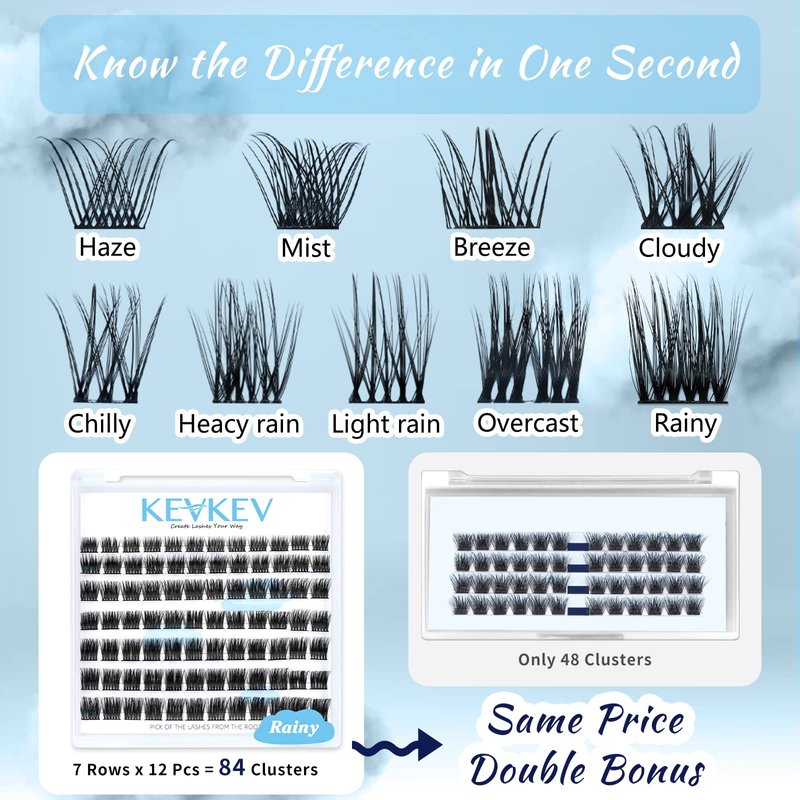 - Different lash styles & length to suit your mood: KevKev offers multiple lengths and curls for different lash look. 84 lash clusters, 8mm - 16mm in length. Try to find your own lash style at KevKev.