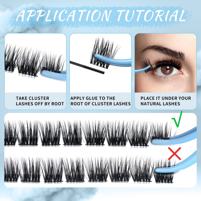 - Soft & Lightweight: Super thin band lash clusters to ensure the lashes will not hurt your eyes. Also we have upgraded our eyelash materials. Our cluster lashes are soft and fluffy just like natural lashes. No worry about the plastic look.