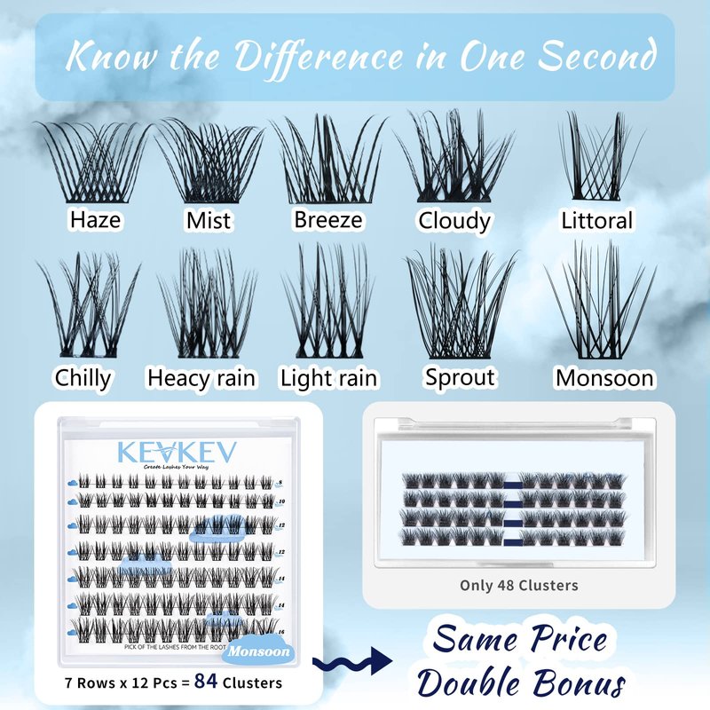 - Different lash styles & length to suit your mood: KevKev offers multiple lengths and curls for different lash look. 84 lash clusters, 8mm - 16mm in length. Try to find your own lash style at KevKev.