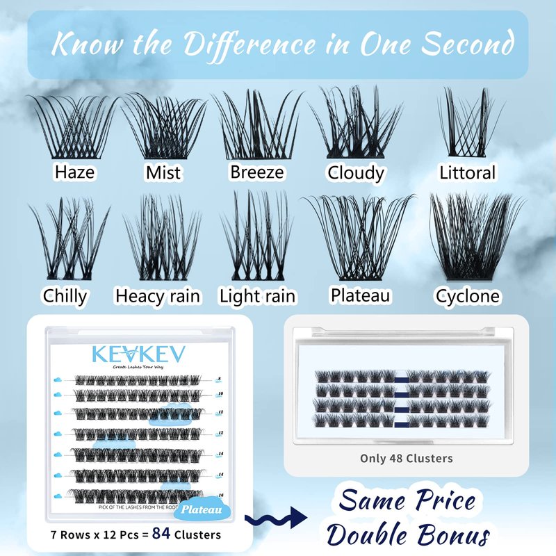 - Different lash styles & length to suit your mood: KevKev offers multiple lengths and curls for different lash look. 84 lash clusters, 8mm - 16mm in length. Try to find your own lash style at KevKev.