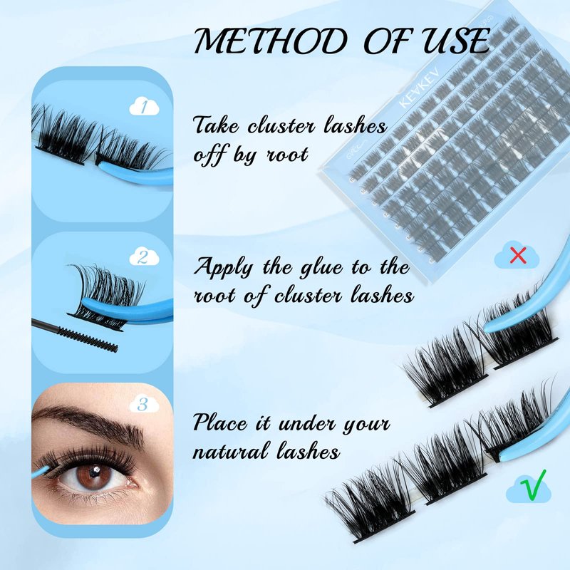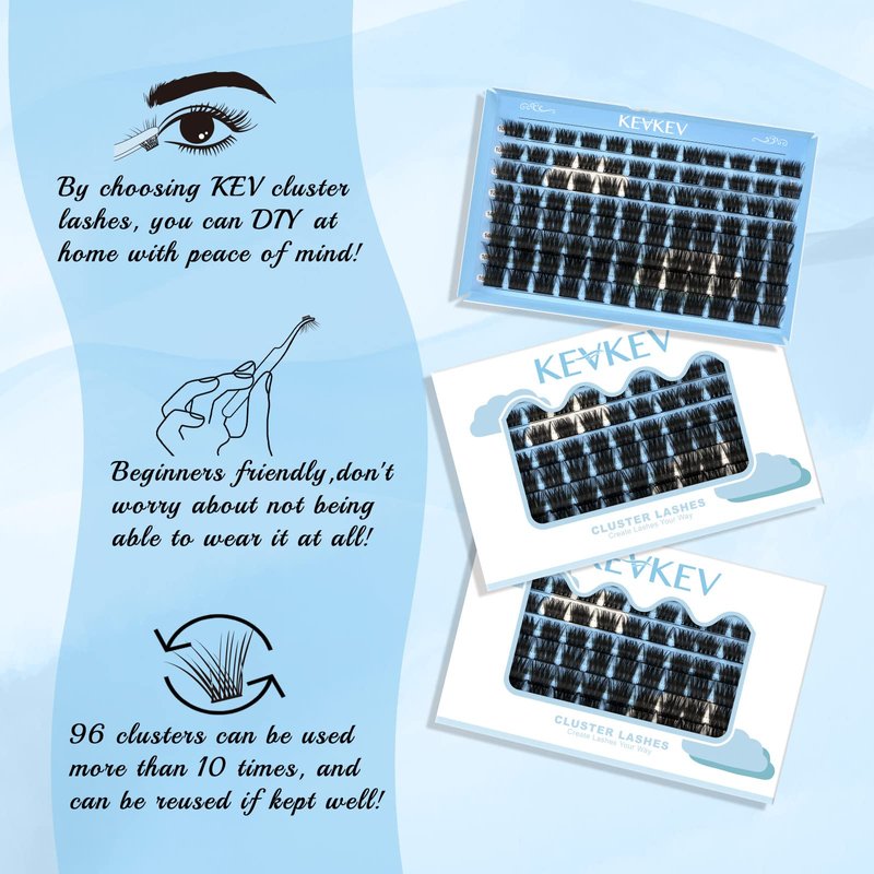 - Different lash styles & length to suit your mood: KevKev offers multiple lengths and curls for different lash look. 96 lash clusters, 10mm - 16mm in length. Try to find your own lash style at KevKev.