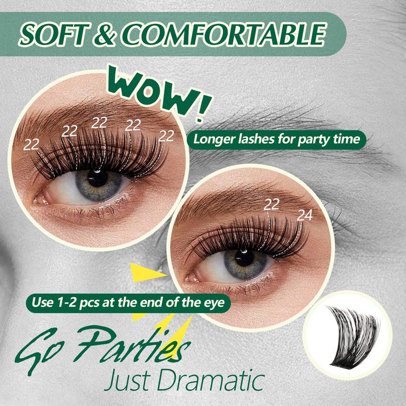 - 【Extra-Long Lash Clusters】18-24mm customized extended length, the eyelash clusters are thicker and more dramatic, can be paired with bold makeup to make people's eyes shine.