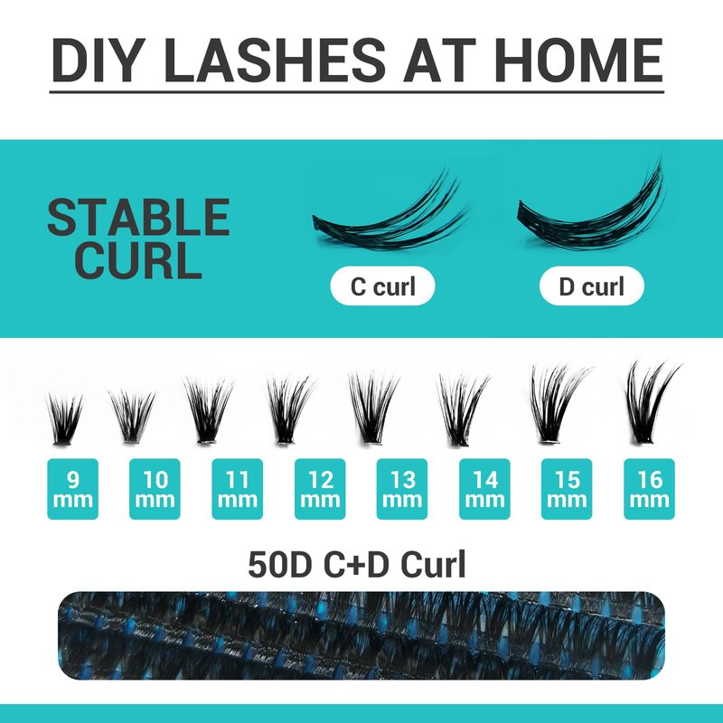 - High-Quality PBT Material: DIY lash cluster kit offers 320pcs high quality C/D curl eyelash clusters 20D 30D 40D 50D 9-16mm length. And, eyelash clusters are made with high-quality PBT Material, look real, lightweight, comfy and durability.