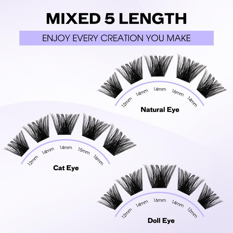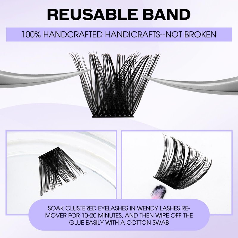 - Super Thin Band Cluster Lashes: Cluster lashes use upgraded process of lash extensions, compared with ordinary eyelash extensions, our DIY lash clusters band is 0.10mm super thin and light weight.