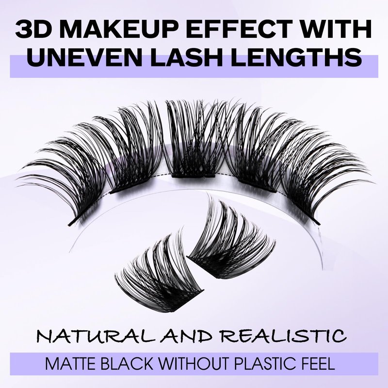 - Soft and Matte Black DIY Eyelash Clusters: The lash clusters are made of new velvet material, soft, comfortable, matte black, natural and knot-free, it looks like your own eyelashes. Lashes that look like extensions can last for weeks.