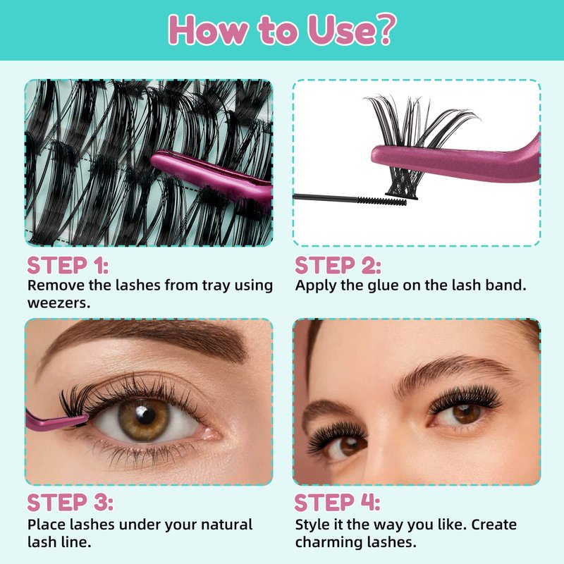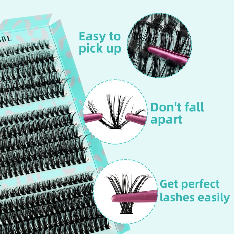 Unique 3D multi-angle cross design,interesting lash clusters from any angle,DIY individual lashes cluster soft and pine,more playful!Ultra-thin eyelashes,immediate use from the rim,very natural,non-plastic feeling.Cotton bands feels so natural,comfortable,soft and lightweight.