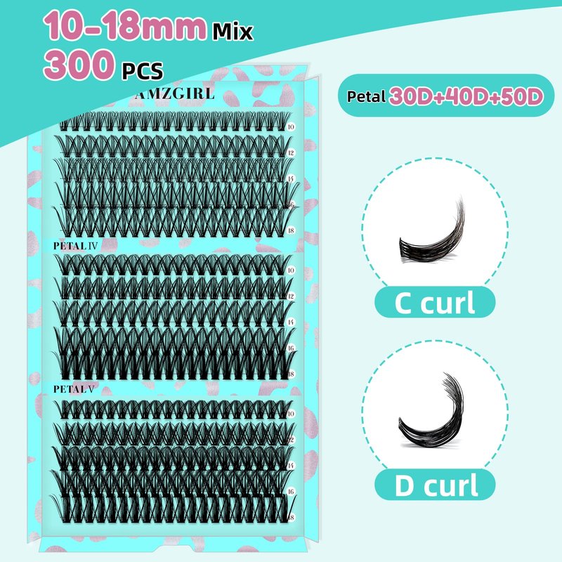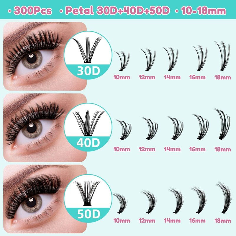 Lash Clusters Diy Eyelash Extensions Individual Lashes Cluster Wispy D Curl Eyelashes Extension Clusters Fluffy Natural 300pcs False Lashes(PP304050,D-Mix10-18mm)