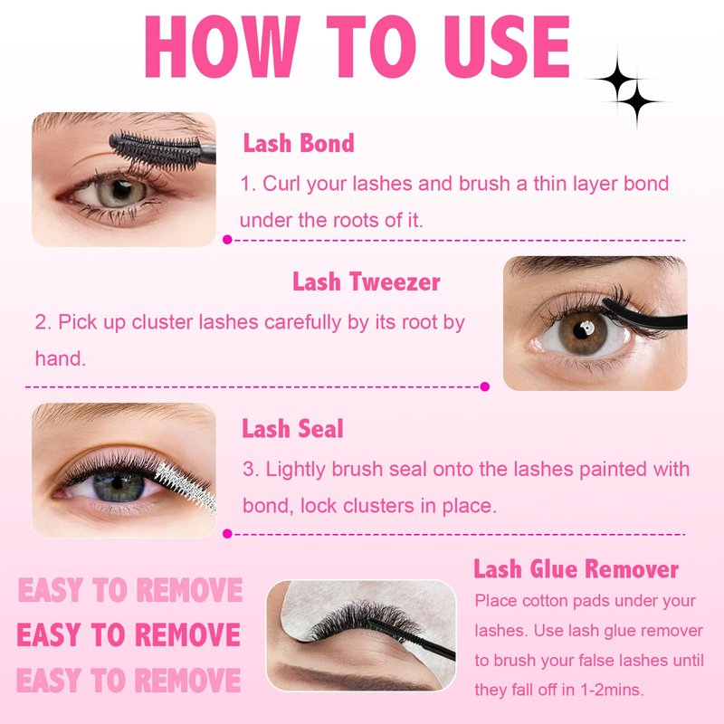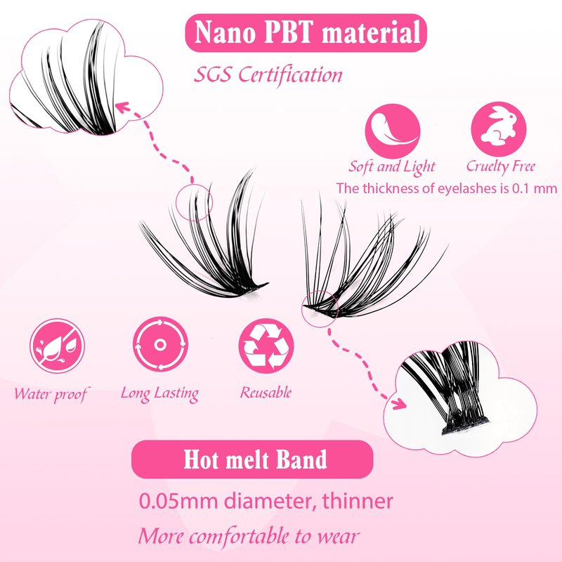 - 【Premium Nano PBT Material】 - Our fluffy individual lash clusters are crafted from high-quality PBT synthetic fiber. These eyelashes are SGS-certified, soft, lightweight. Enjoy applying lashes with our DIY lash extension kit without feeling any burden on your eyes.