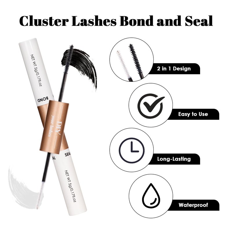 - 🌼【Eyelash Bonding and Sealing 2 in 1】 This 2-in-1 lash bond and seal design is both convenient and efficient. One side is an eyelash adhesive and the other side is an eyelash sealer. Our gentle and advanced formula is fume-free, non-clumping and non-irritating. The lash adhesive provides long-lasting hold and its water and sweat resistant properties ensure super hold for at least 48 hours. The spiral lash brush head ensures that the adhesive is applied evenly and is as easy as applying mascara.