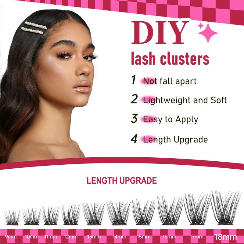 - DIY Individual Clusters at Home: You can apply cluster lashes at home by yourself.Gently dab the cluster lash glue on your natural lashes or on the cluster lash band, and then apply the lash clusters in the way you like.Cluters take less time to complete each eye. Now save so much money and time.