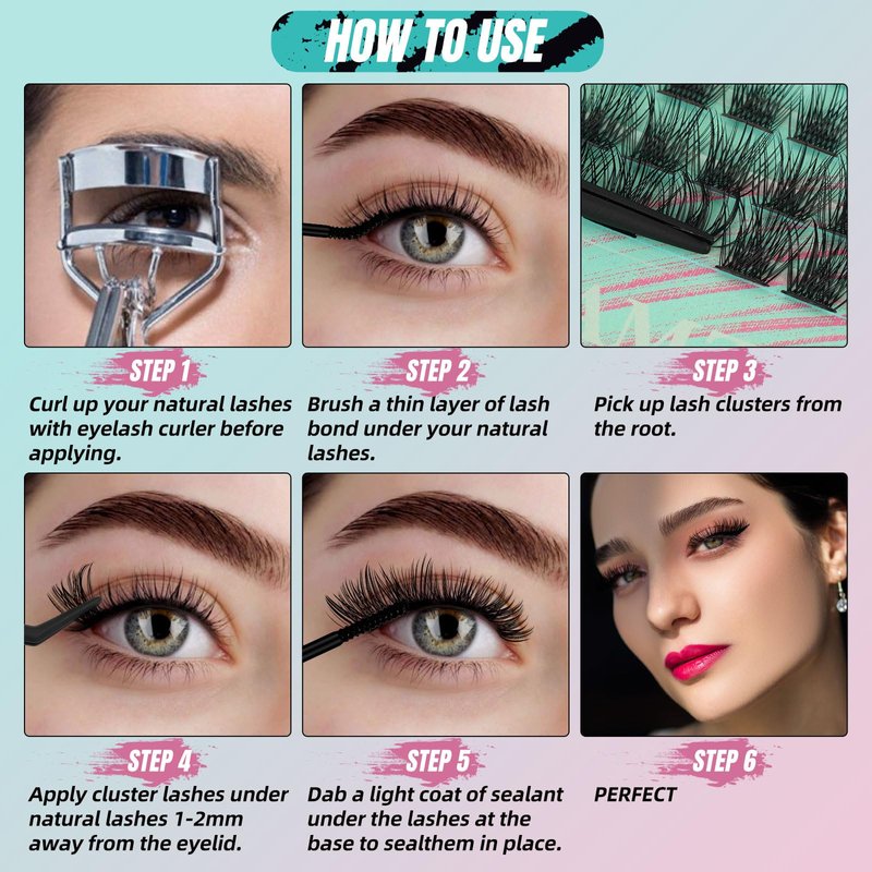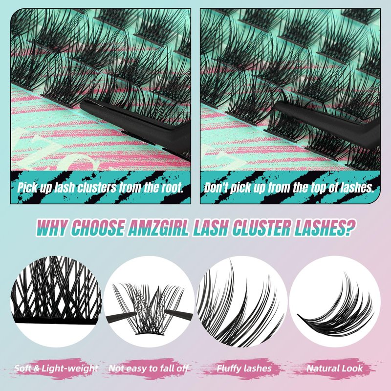 - 【Great Quality Eyelash Clusters】AMZGlRL cluster eyelash extensions in individual lashes kit are soft and lightweight, easy to apply even for beginners. Lash extension in diy eyelash extension kit have great quality, looks real and natural. You can enjoy applying lashes with this eye lash extension lash kit.