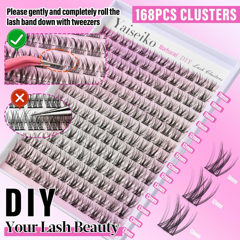 - 【WISPY LASH CLUSTERS】This pack contains 168pcs wispy cluster lashes, which include 11mm*48pcs, 12mm*60pcs, 13mm*60pcs,based on your preferences and desired natural false lashes visual effects, you can diy at home instead of salon, save more money and time for makeup, more convenient.