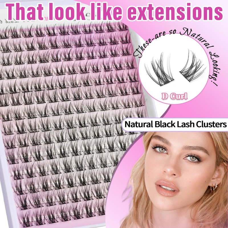- 【3D VOLUME D CURL EYELASH CLUSTERS】The 3d effect d curl lash cluster creating depth, dimension for your eyes.3 mixed-length eyelash clusters that you can match different lengths and shapes to your liking. 4-6 cluster lashes per eye are sufficient, and 1 box of individual lash clusters is enough. Easily create any eyelash extension style of your makeup suitable for any scene.