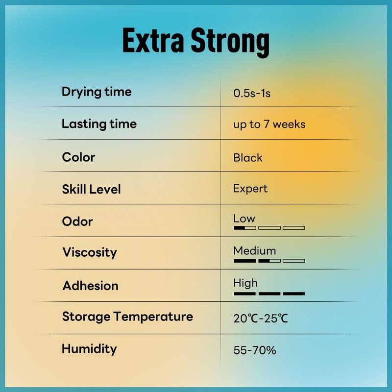 - [Super Hold]:Thanks to a brand new formula on the market, this eyelash extension adhesive has a good holding power, and with its waterproof and oilproof properties and high elasticity, the eyelash extension adhesive stays on for up to 7 weeks and is not easy to fall off.