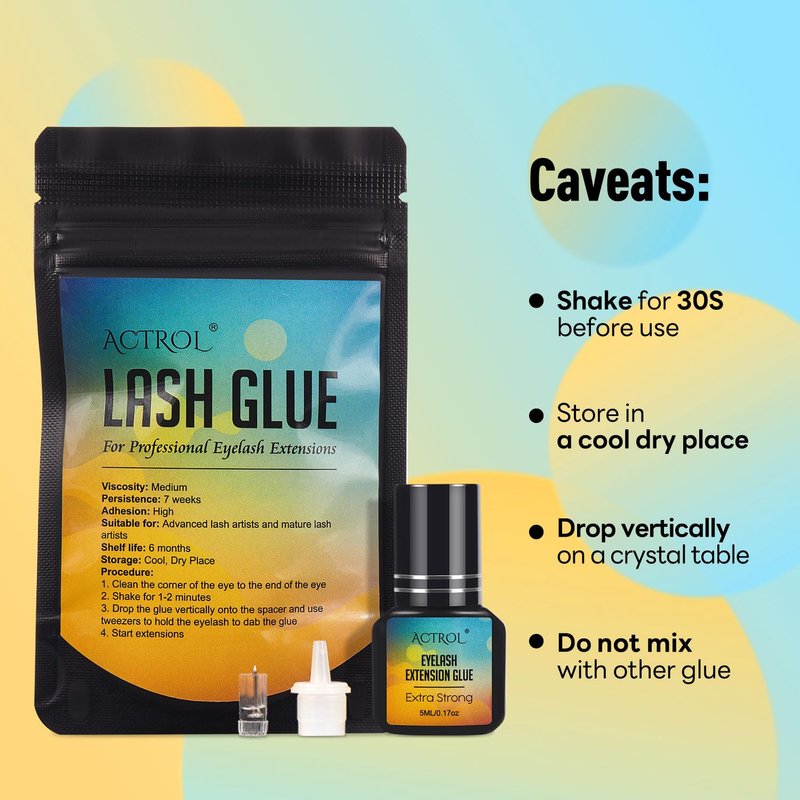 - [Caveat]:Remind customers not to touch moisture and cleanser within 24 hours after eyelash extensions to ensure the glue lasts for more than 8 weeks.So your clients can wash their faces normally after 24 hours.Recommend replacing glue drop every 15-20 minutes. Store adhesive in a cool, dry area.