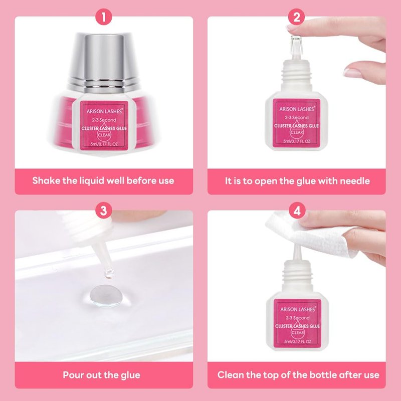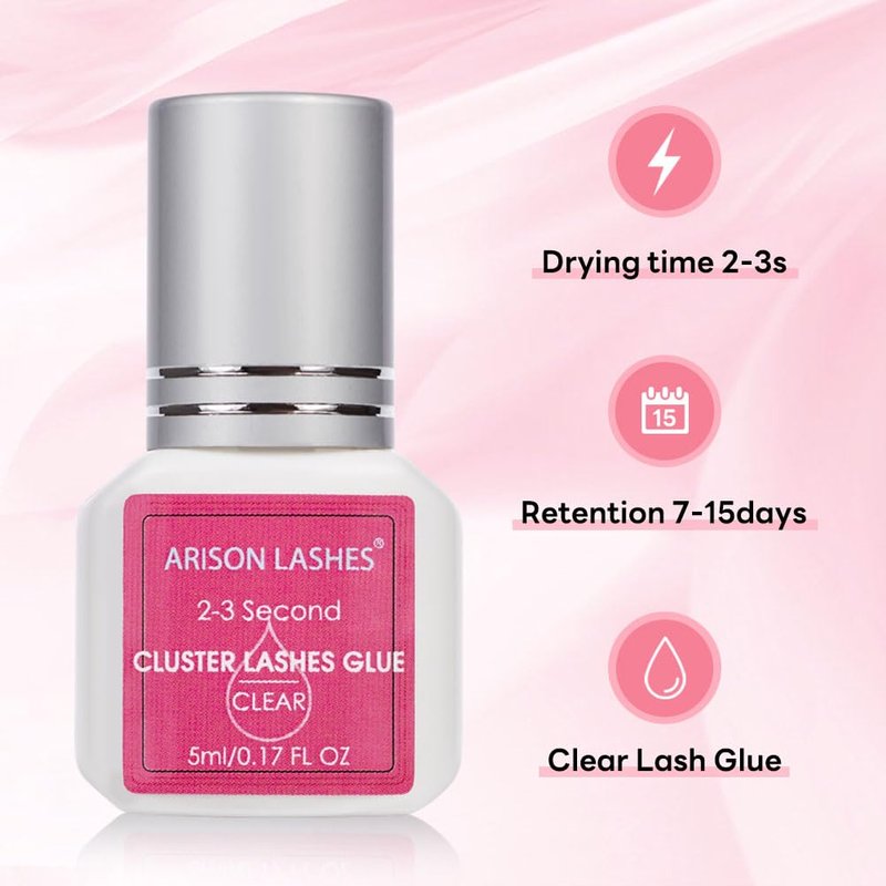 - 2-3s Drying and Long Lasting Sensitive Eyelash Glue: Cluster Lash glue has moderate time of 2-3 seconds, compared with quick-drying glue, this cluster lash glue is more suitable for beginners, and can adjust cluster eyelashes again. This clear eyelashes glue will stay sticky for 3-5 days.