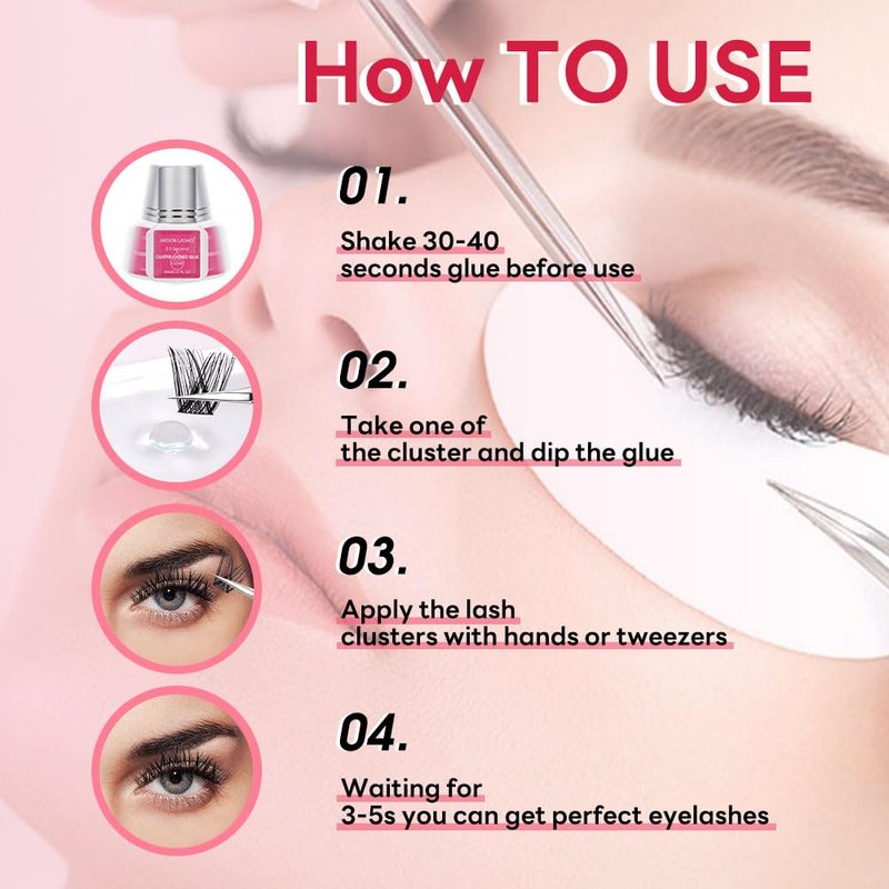 - Waterproof and No Hard Cluster Glue: This DIY lash glue is waterproof eyelash glue, even in the hot and sweaty summer, you don't need to worry about eyelash shedding when using cluster lash glue. Our lash cluster glue will not turn white in case of water.