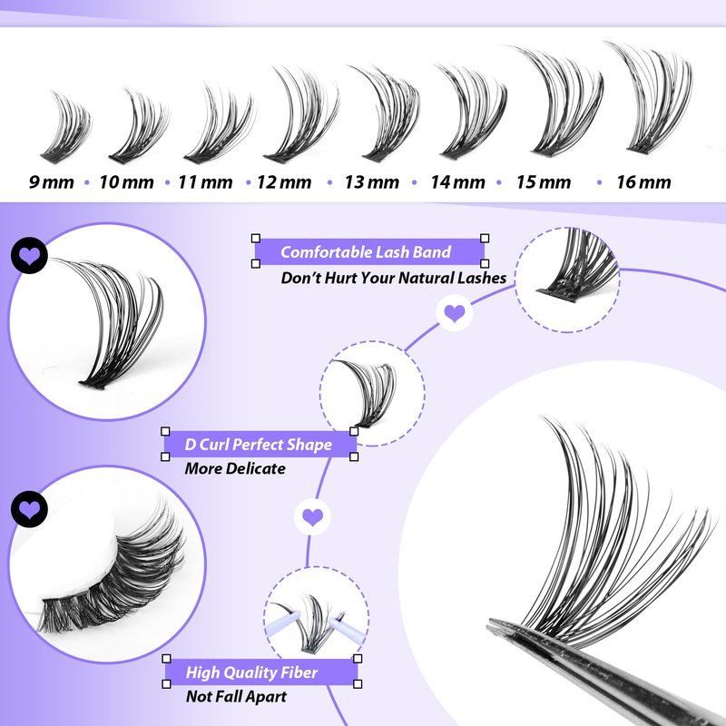 - [Strong Hold for 24 hours] Developed with advanced knotting technology, the cluster lash band is more durable than normal clusters; if you gently take it up by the roots, it won't break. The comfortable, durable band is simple to adhere to and can be worn for over 24 hours.