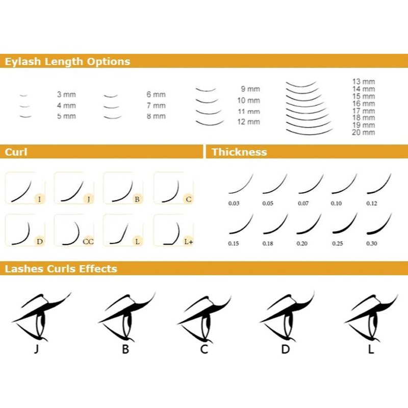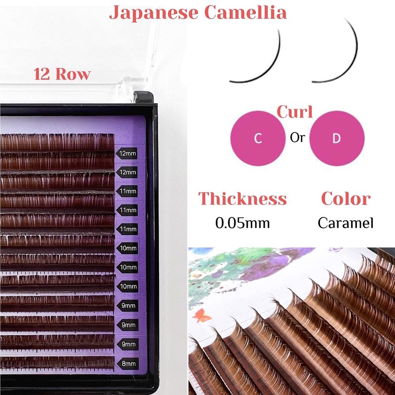 - Color: Caramel, Thickness: 0.05mm, Curl: C, Length: 10mm & 11mm.