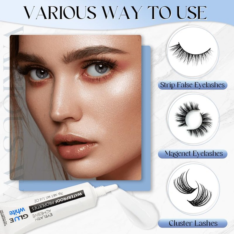 This is waterproof eyelash glue for false lashes super strong that keeps your falsies in place, perfectly aligned with your eye shape, and comfortably attached to your natural lashes, making your beauty last all day.