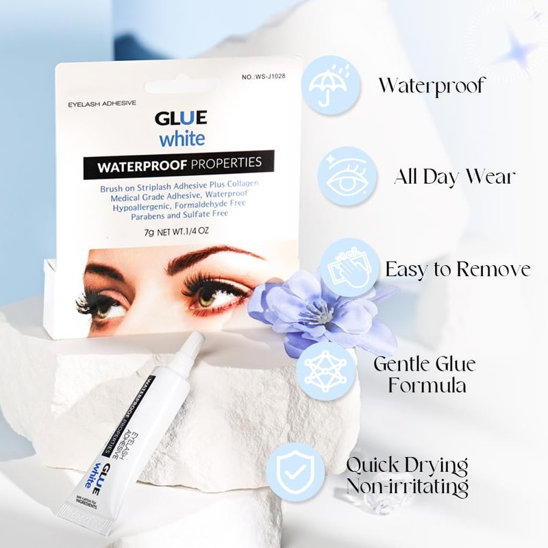 Lash Glue for Eyelash Extensions 7g All-Day Hold Cluster Eyelash Glue Waterproof Strip Lash Adhesive Latex Free for Sensitive Eyes(White/Clear)