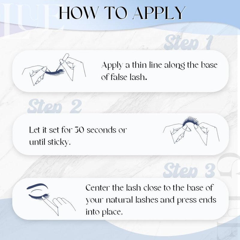 - 【Quick Drying Lash Glue】:This eyelash adhesive is super sticky and provides a longer lasting, stronger hold, faster dry time, and long-lasting hold that can be firm all day. The lash glue is waterproof and sweat-proof. No residue, perfect natural look, and feels comfortable and avoids the embarrassment of false eyelashes falling off.