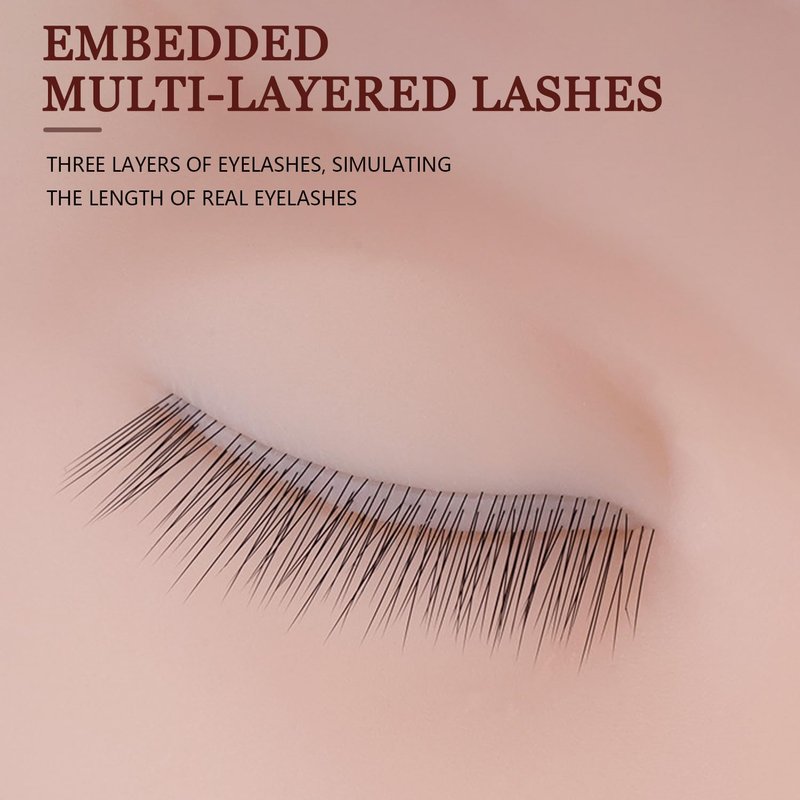 - Embedded Multi-Latered Lashes: Upgraded 3 Layered lash mannequin head is more similar to human eyes that same multi-layer structure as real lashes, super realistic training experience. Embedded Multi-Latered Lashes allow you reusable lashes after the training, use cream remover to remove the lash extensions, the eyelash can be used at any time.