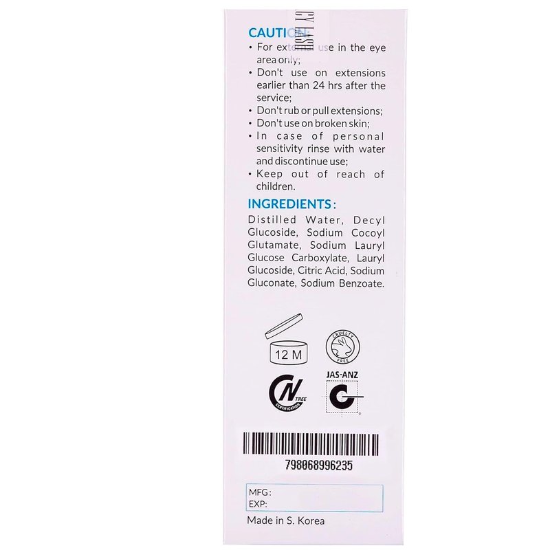 - Home use – safe and easy to use comes with a handy 100 ml size with a shampoo brush as eyelid make up remover and lash cleanser to care after lash extensions for long wear and a great mascara look.