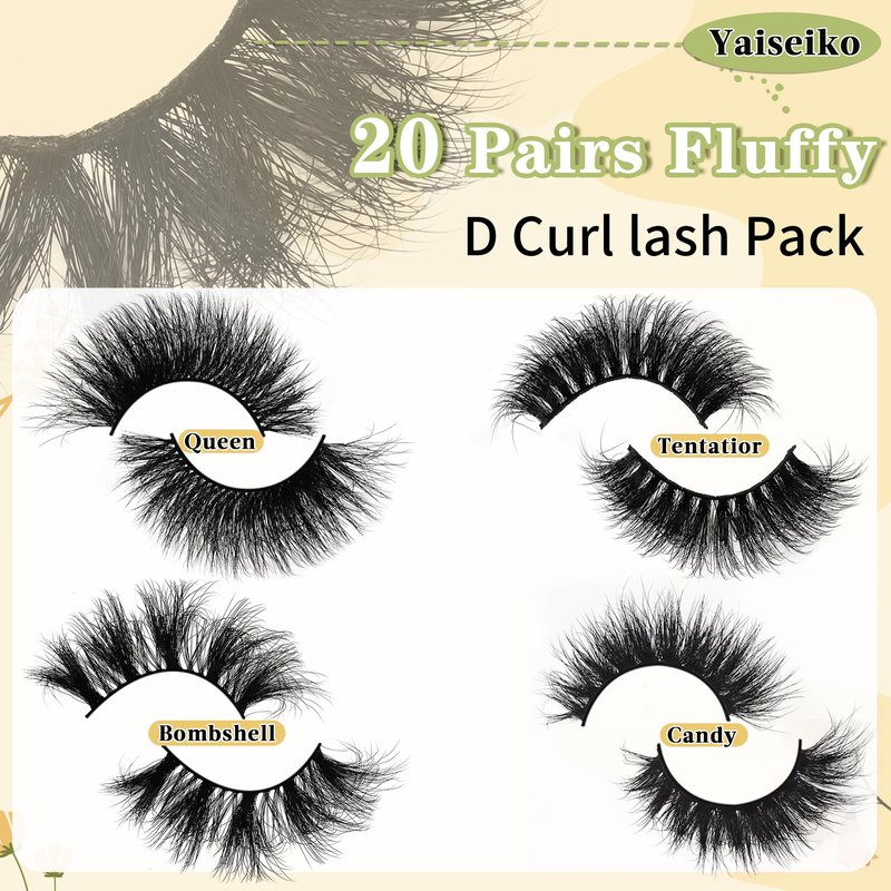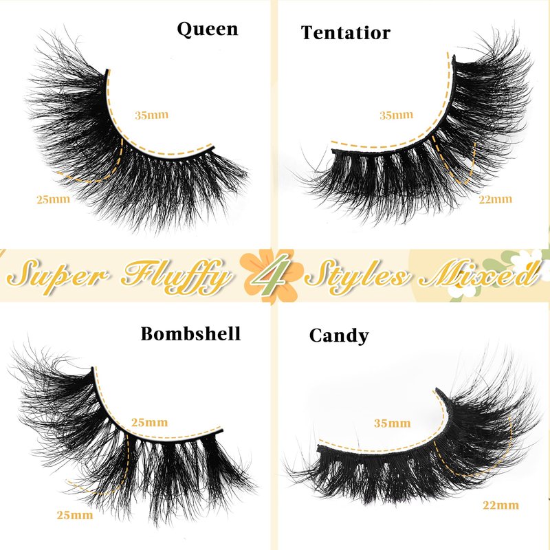 - 【DRAMATIC EYES AND A FULL COMPOSITION】 Yaiseiko 25 mm mink lashes fluffy with a lot of volume.The lashes have the perfect amount of wispy.Included Queen, Bombshell, Tentatior,Candy four styles, Make your eyes charm and attractive.