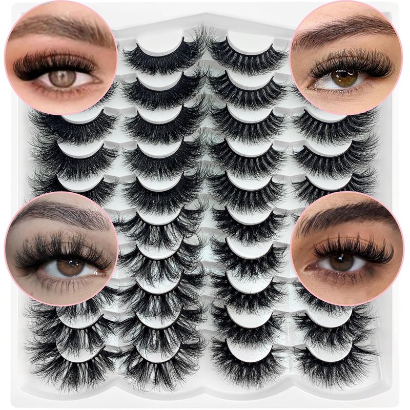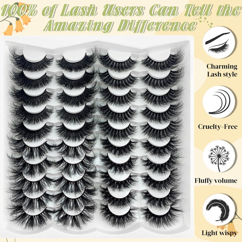Lashes Extension Dramatic 20mm/25mm Lashes Mink 8D Volume Curly Fake Lashes Wispy Full Mink Lashes Long 20 Pairs False Eyelashes D Curl Strip Lashes Pack