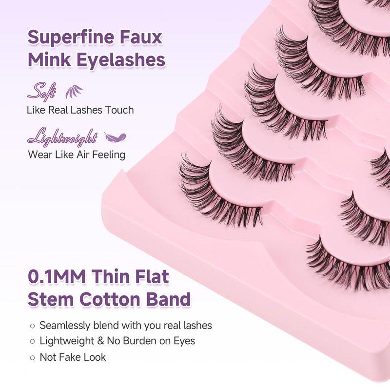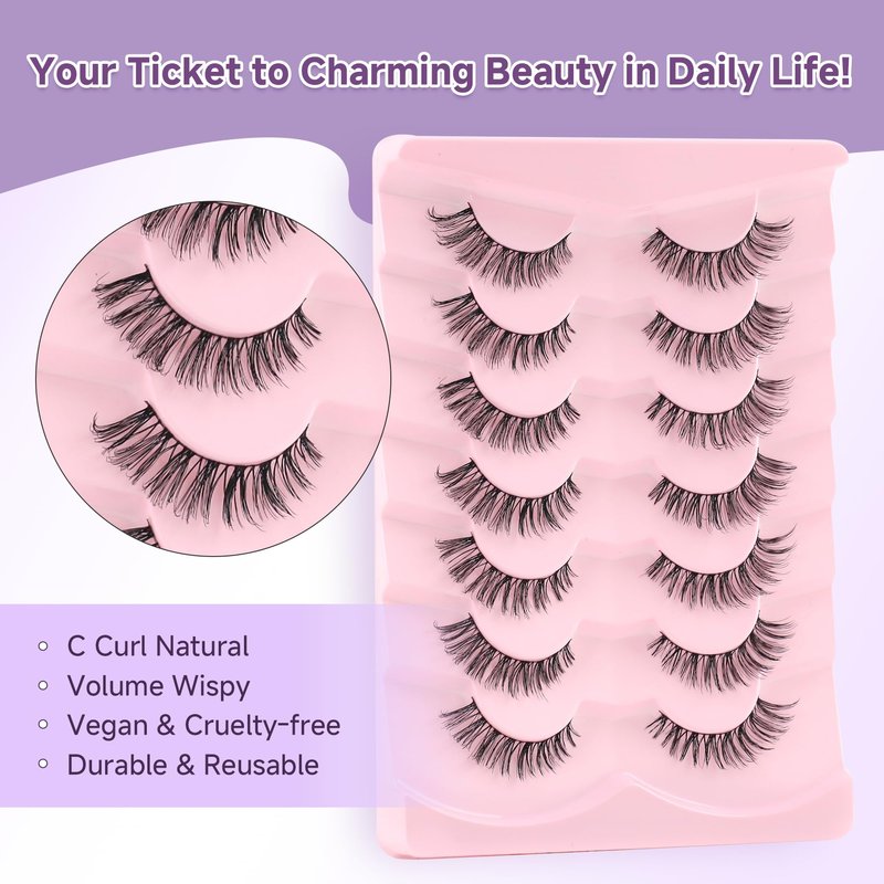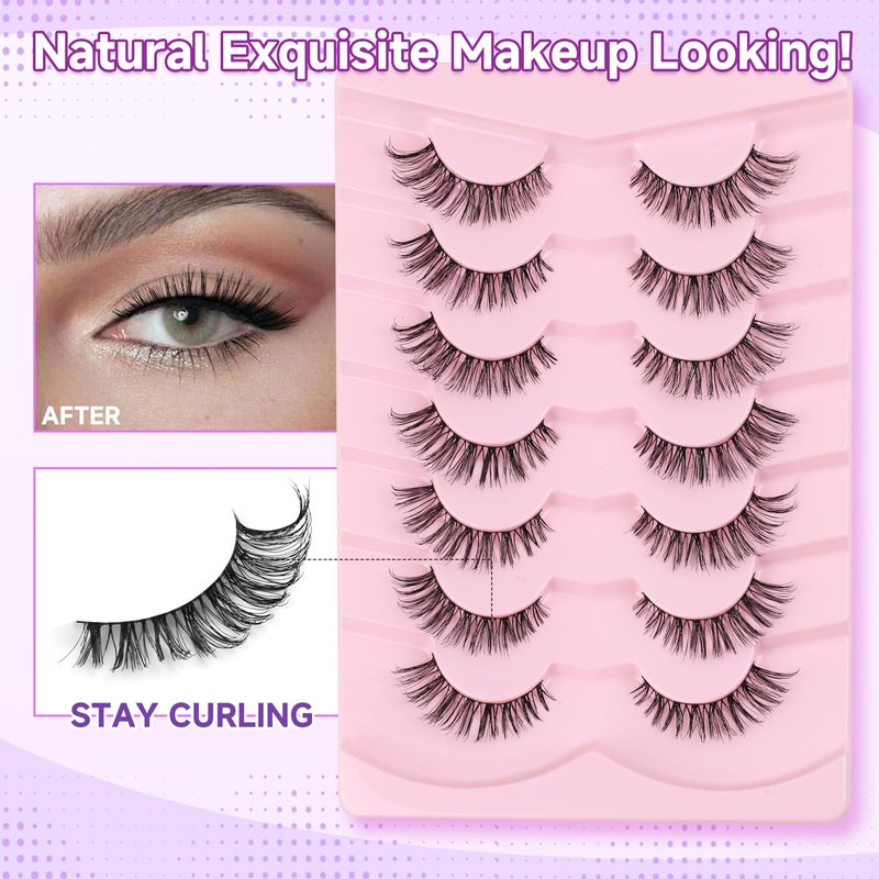 - VEGAN & REUSABLE: 7 pairs cat eye lashes pack. The fake eyelashes use ultra-light faux mink fibers, cruelty-free, skin friendly. Bring pretty natural lash extensions look without damaging your own eyelashes, suit for DAY-TO-DAY use, wedding, vacation and so on