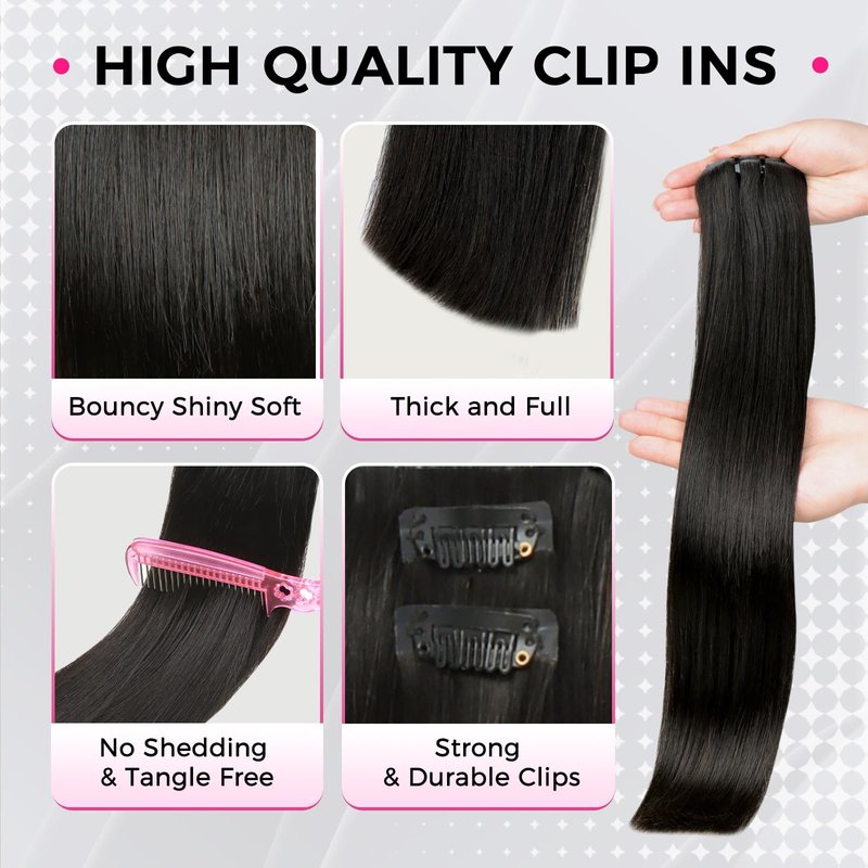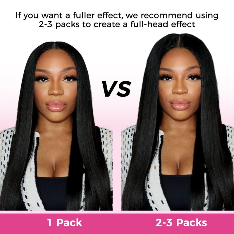 - [How Many Packs You Need] Our seamless clip hair extensions use the latest skin-weft technology to make sure more hair can be on the PU strip. If you have thick hair, we recommend 1-2 packs to add weight, 2-3 packs to add length. If you have thin hair, we recommend 1-2 packs to add length, 2-3 packs to add weight. With proper care and maintenance, you can enjoy your extensions for months. Allowing you to add length, volume and thickness to your hair in minutes.