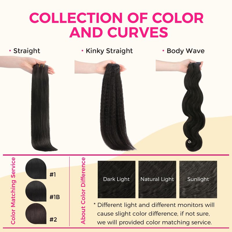 - [Lashey Seamless Clip Ins] Our seamless clip in human hair extension has a variety of curves, straight, kinky straight, body waves. We also offer several colors for people to choose from, natural black, jet black, dark brown. Details: 7pcs/9pcs. Weight and Size Specification: 12 inch-80g, 14-26 inch-110g/150g. You can choose any curved color and size you like.