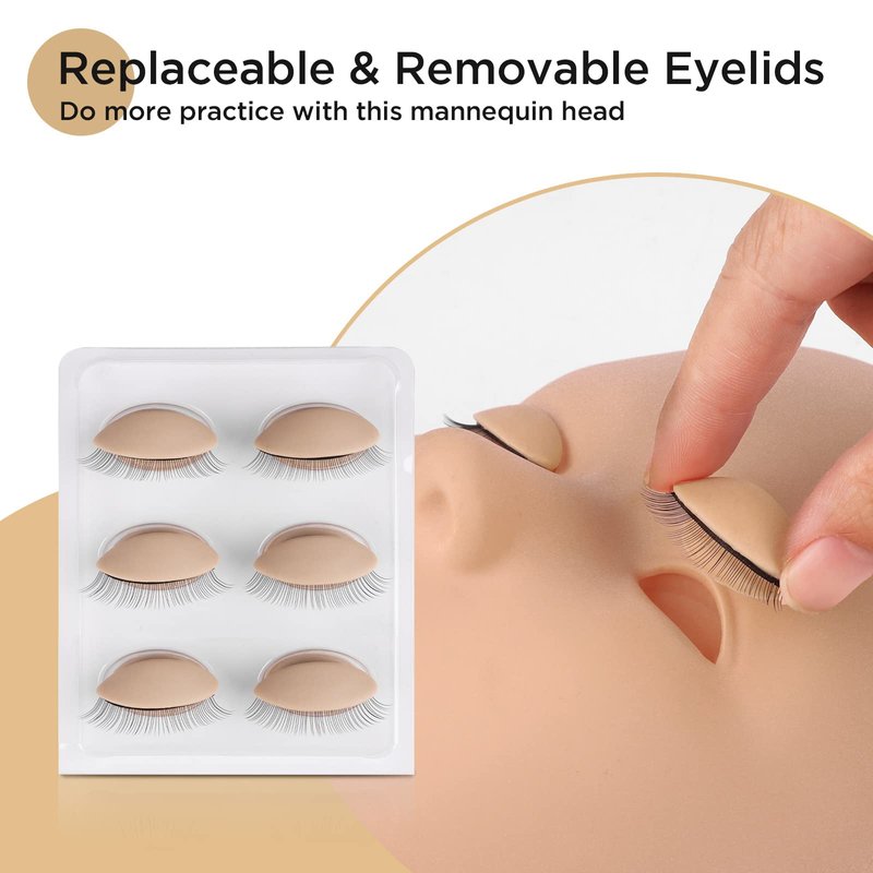 - 【PREMIUM QUALITY MATERIAL】 LASHVIEW lash mannequin head is made of high quality soft-touch silicone, and this lash extension mannequin head has three different skin colors and comes with 4 pairs of removable eyelids. It is more sanitary than a traditional mannequin head since the used eyelids may be replaced at any moment.