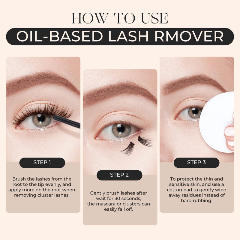 - How to Use: 1: Apply lash remover to the root of the tufted lashes where there is glue and wait 35 seconds for the lash glue to dissolve. 2: Brush lashes with false lash remover several times from top to bottom until the clusters come off. 3: Remove the eyelash clusters or cosmetic residue with a cotton pad and rinse your eyes until there is no residue.