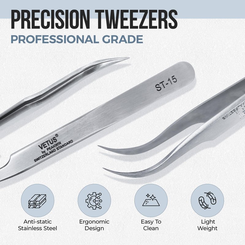 LASHVIEW Lash Tweezer, Vetus Curved Eyelash Tweezers for Profissional Grafting Eyelash Extension, Stainless Steel Needle Nose Tweezers for Lash Extension Stickers Precision Electronics, ST15