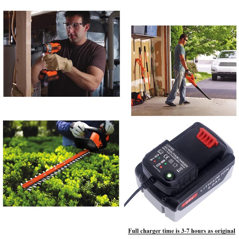 - ✅ Great Replacement for Black and Decker 20V Max lithium battery charger/Replacement for Black and Decker 20V charger LCS1620B, BDCAC202B, and 90590282; Compatible with Black & Decker 16V 20V Max outdoor power tools hedge trimmer, weed eater, blower, drill, and saw battery.