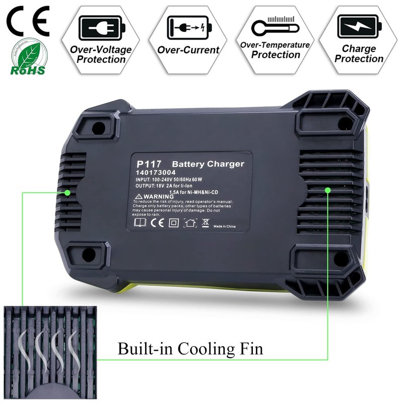 - 【Great Replacement for Ryobi Charger P117】Lasica Brand new P117 18V One+ charger Replacement for Ryobi original battery charger P118 P135 P119 P118B 140237023 140153004. Compatible with Ryobi 12V - 18V ONE+ Lithium, Ni-Cad & Ni-Mh batteries and support quick charging.