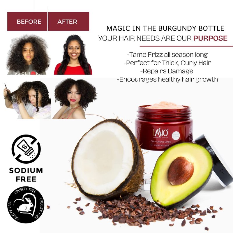 - HAIR MAKEOVER: Deep Cacao Mask works to rebuild hair bonds, restore moisture, increase strength and elasticity while adding shine, eliminating frizz and helping prevent hair loss. The perfect step to complete your Lasio Regimen.