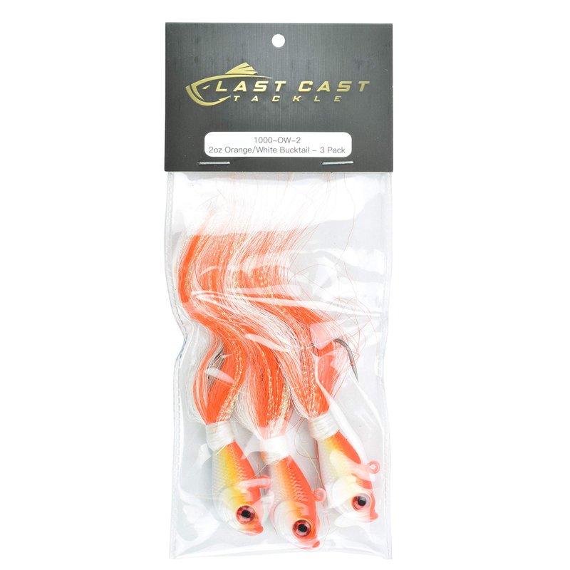 LAST CAST TACKLE 1-2oz Orange & White Bucktail Fishing Lure Jigs - 3 Pack (1.0 Ounce - 3 Pack)