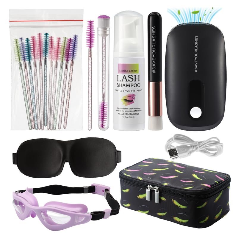 Lasting Lashes Lash Extension Care Kit | Lash Cleaning Kit | Lash Extension Supplies | Lash Shampoo Kit | Eyelash Sleeping Mask for Extensions | Lash Fan | Lash Bath Kit | Eyelash Shampoo