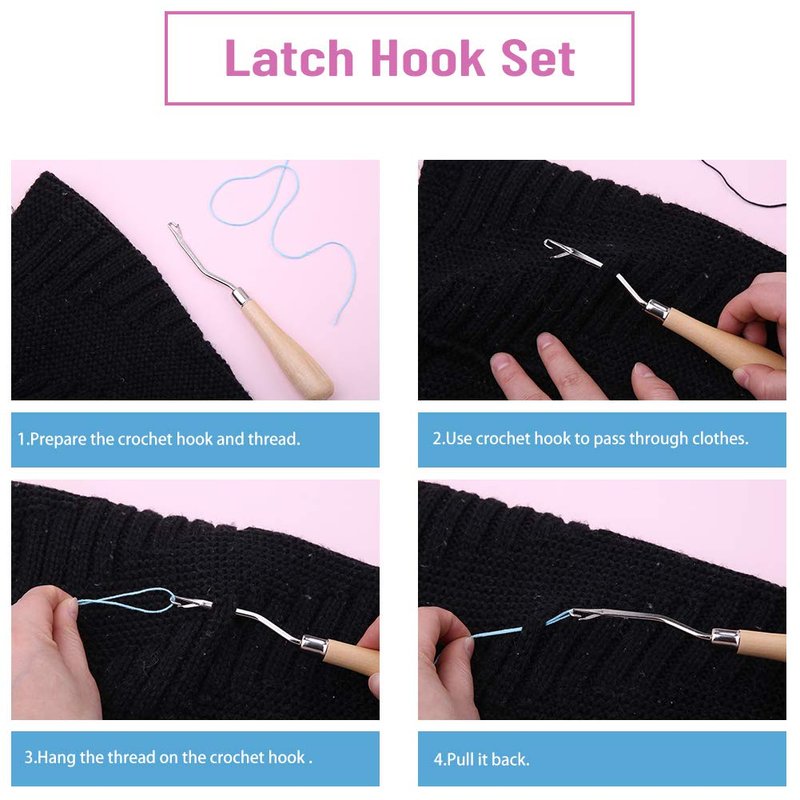 - Widely Application:Latch hook kits for adults crochet needle is also perfect for weave, tighten, fixed, crochet patterns, revamp broken stockings and socks, etc. Help to improve efficiency.