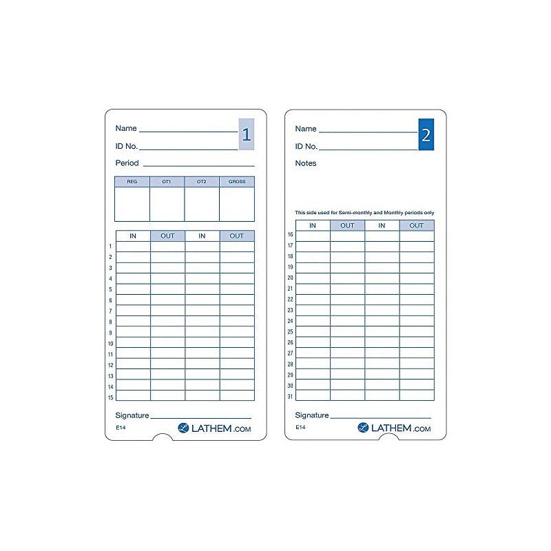Lathem E14-100 Pack of 100 Time Cards, 2-Sided, for use with Lathem Model 400E Time Clock, 7" High