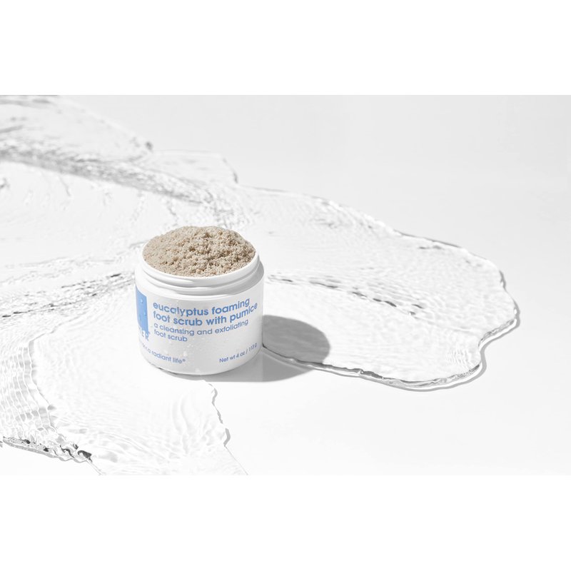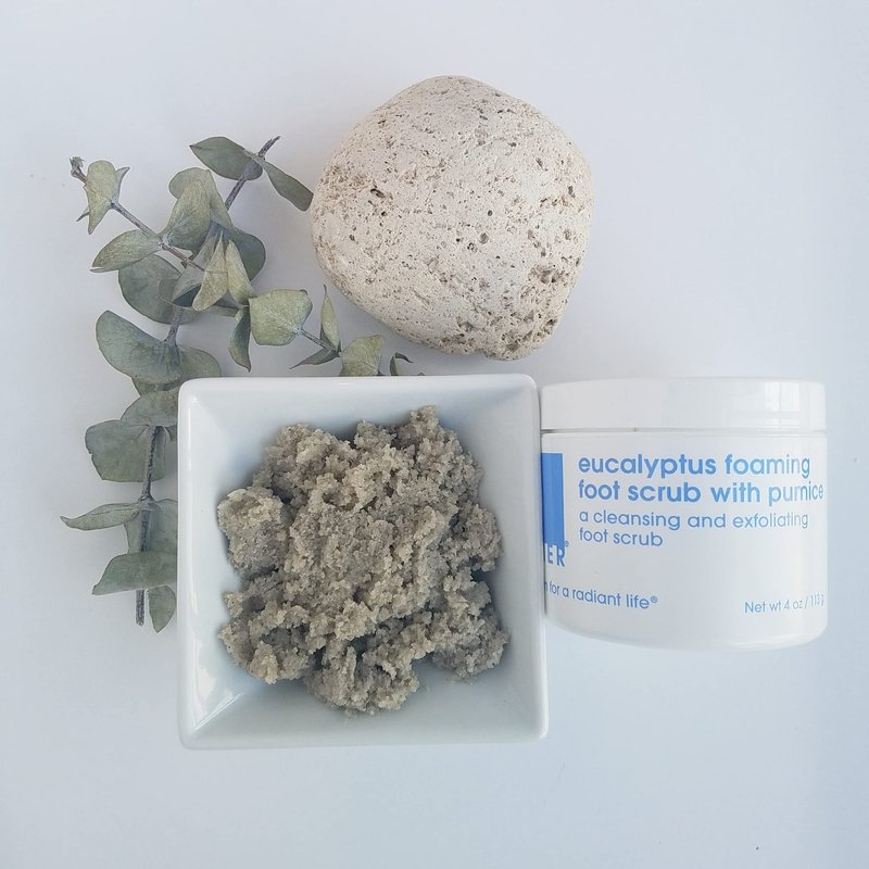 - FOOT SCRUB FOR SMOOTH, SOFT FEET: Exfoliating and foaming foot scrub with with granulated pumice that exfoliates; made with a blend of essential oils containing eucalyptus, lemon and lavender in a 4 oz jar