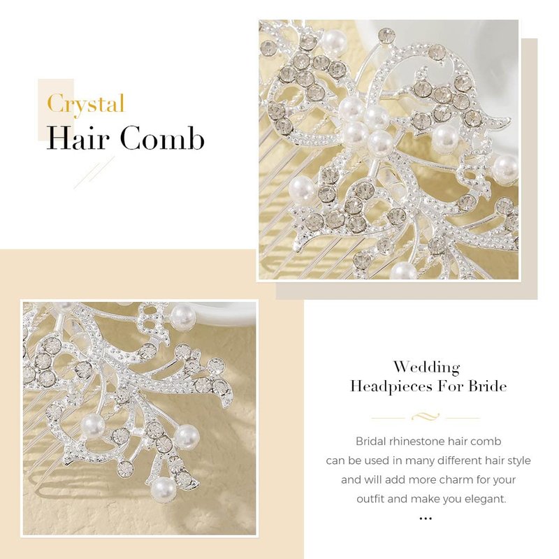- Pearl hair combs made of flowers, exquisite rhinestones, romantic pearl, soft alloy wire.